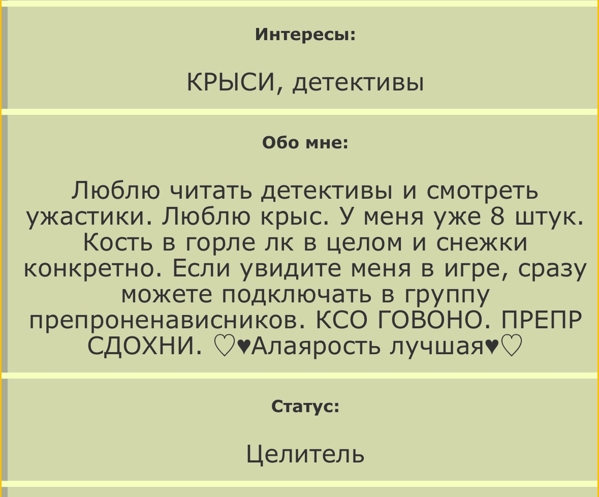 пожелания смерти, угрозы, унижение достоинства и оскорбления - это регулярная вещь, которую практиковал пауколап как в WCO, так и на вашем форуме, на который мы, с вашего позволения, часто заглядываем. некоторых людей его сообщения задевали, но мы решили быть выше этого и относиться ко всему с позитивом uwu