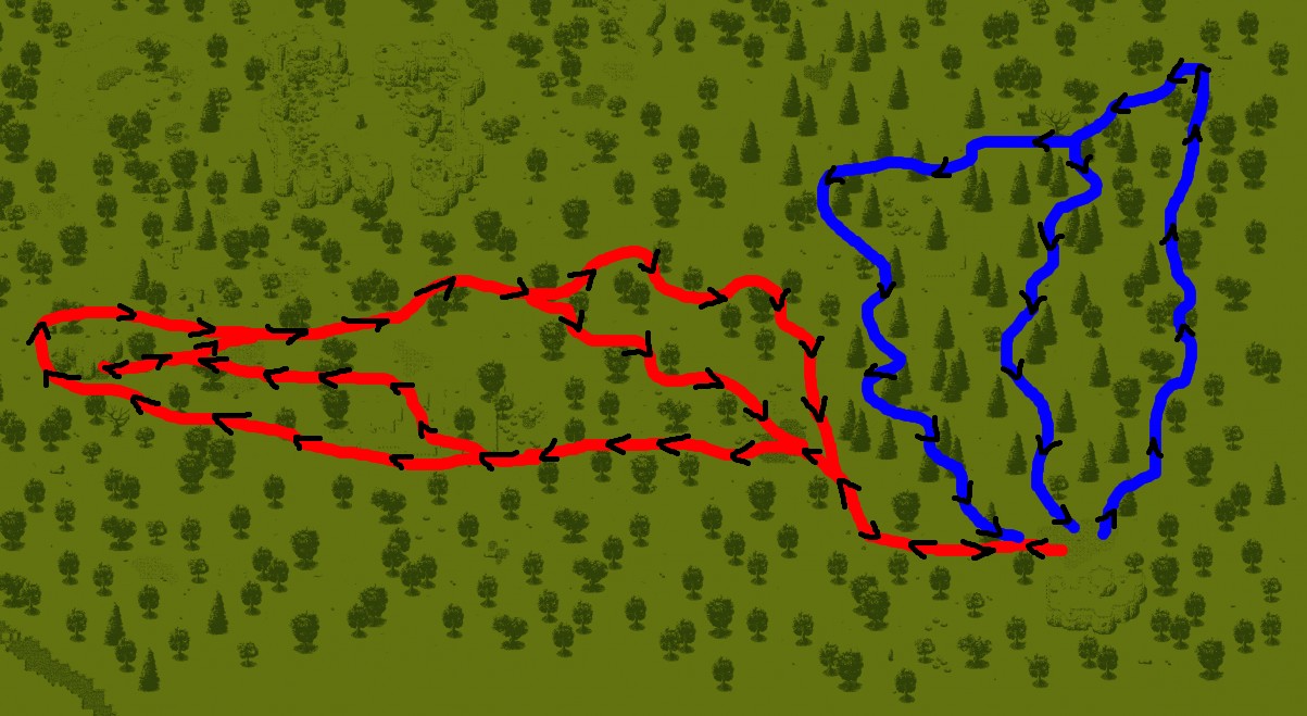 Собираем всех вместе и считаем, если людей много делим на две группы, одна мотает к Огненной полянке верхний маршрут, другая мотает к Сумеречному гроту и Лохматой поляне нижний маршрут. Сами можем посидеть почиллить или побежать вместе со всеми.