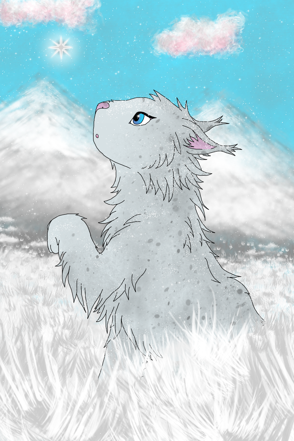 Белоснежная кошечка бесшумно вышла на опушку, ступая мягким белым ковром, что укрывал землю. Из её приоткрытого рта вырвалось облачко пара и растворилось в голубизне утреннего неба. Она недовольно дёрнула хвостом (холод пробирался сквозь тёплую шубку, ощущение не из приятных) и села на пушистый снег, будто на мягкую подстилку в своей палатке.